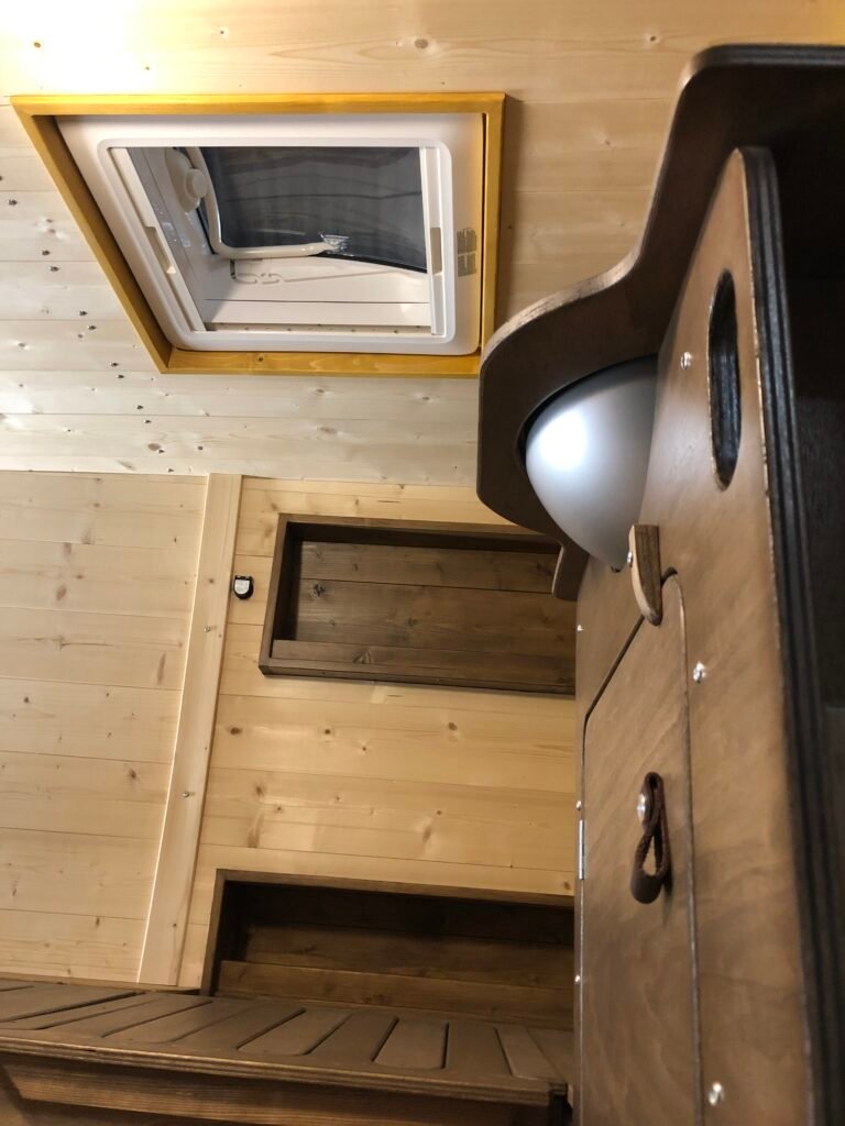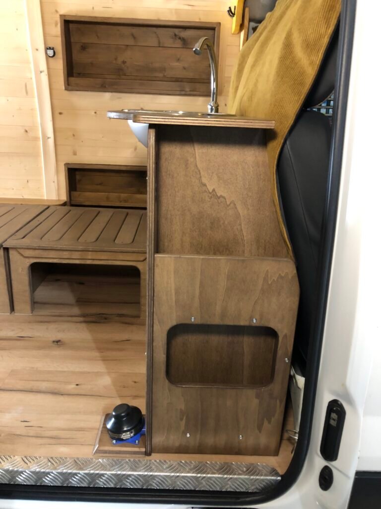 Il s’agissait d’avoir suffisamment de place pour se poser, manger, dormir confortablement, avoir de l’eau au robinet, des réserves d’eaux claires et grises, quelques rangements, de la lumière, de quoi recharger un téléphone et quelques accessoires et enfin se mouvoir sans être obligé de tout chambouler.